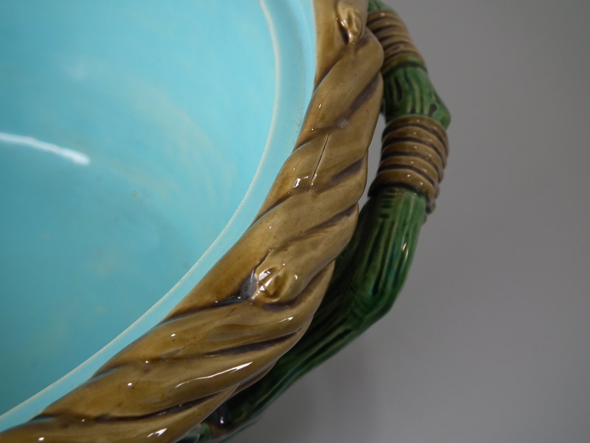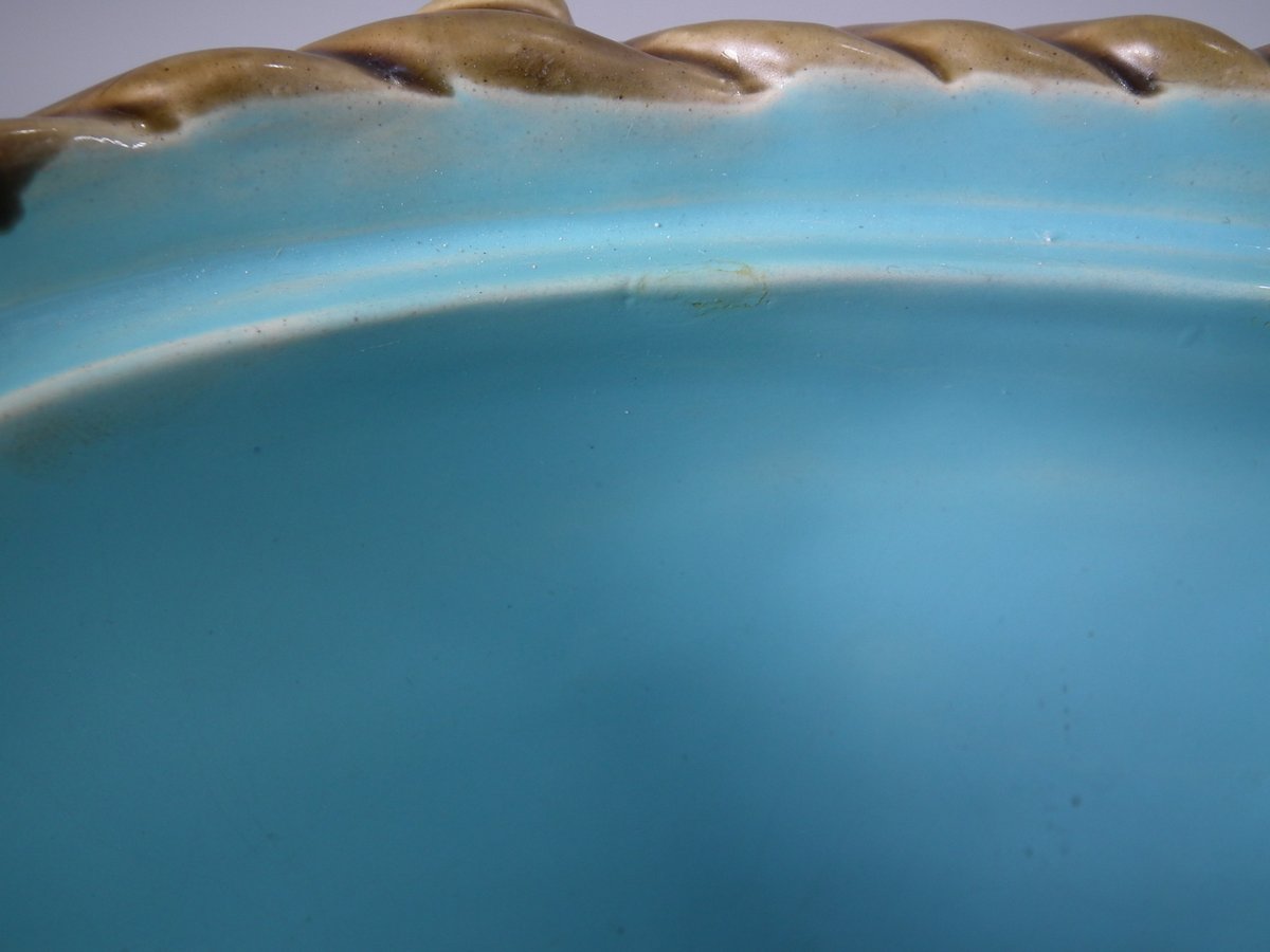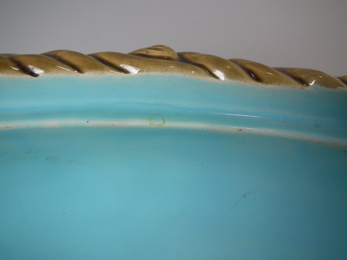 Dish: Good. KILN EFFECTS: over-glazed shrinkage lines to the rope rim;
