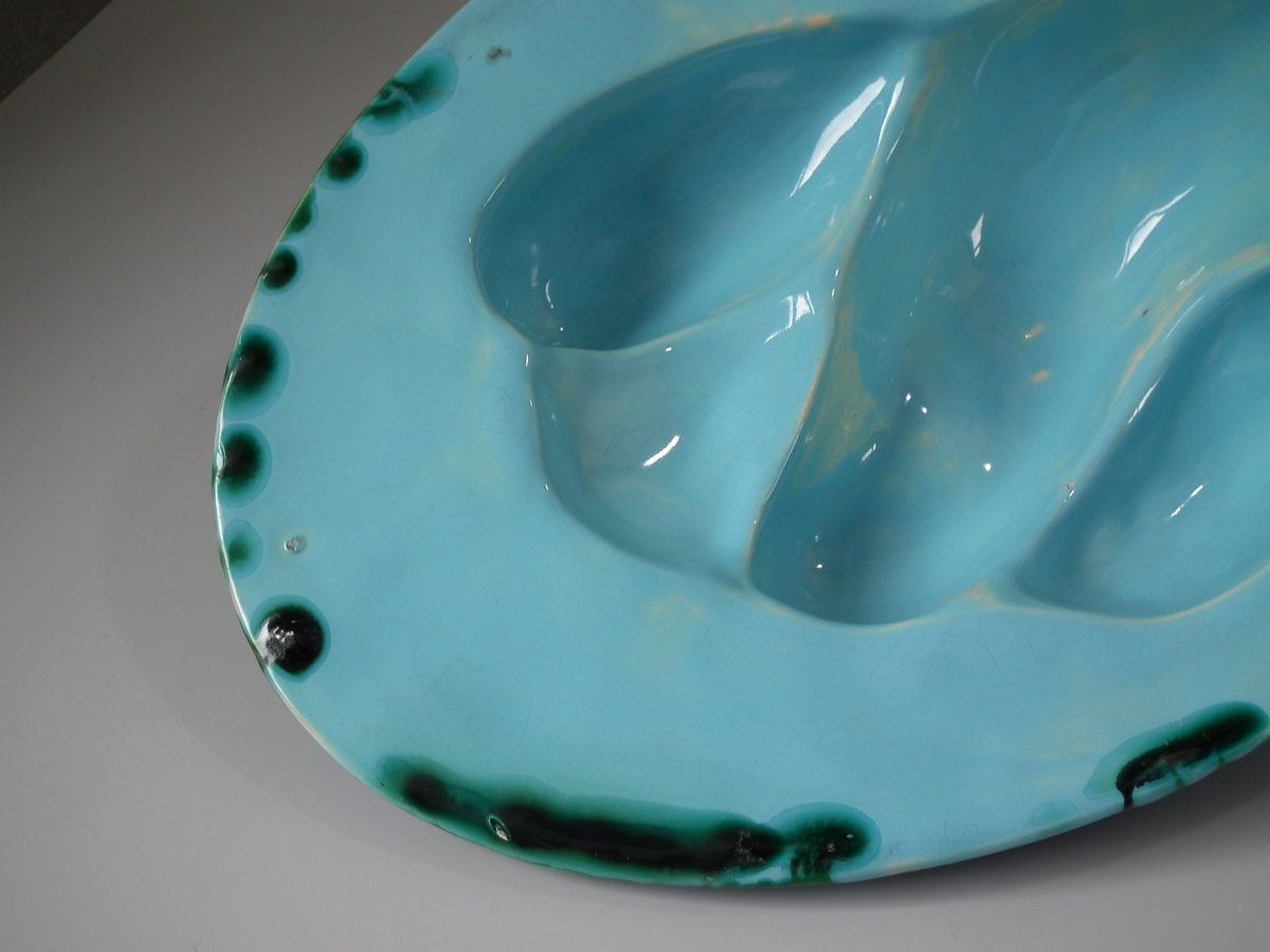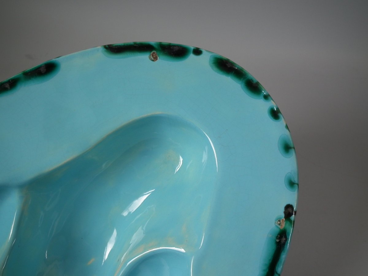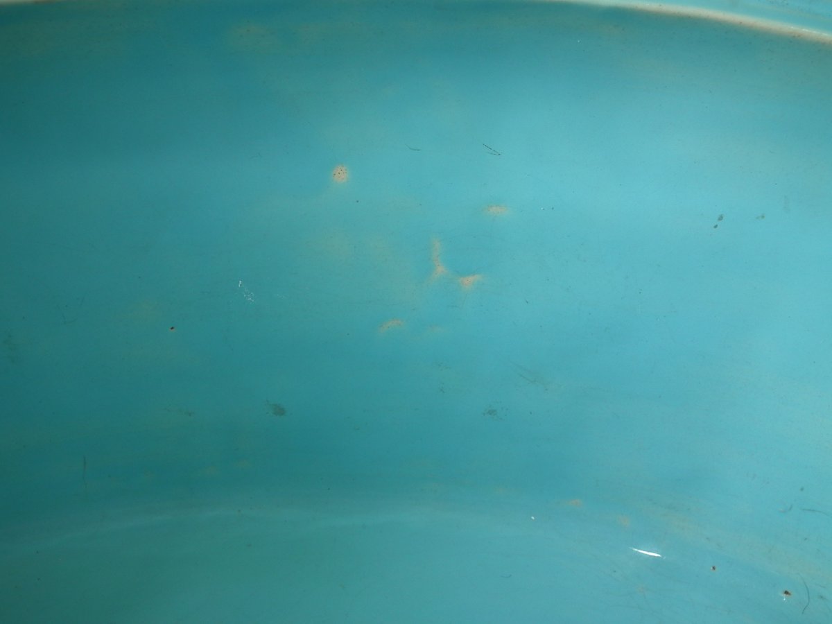Dish: Good. KILN EFFECTS: over-glazed shrinkage lines to the rope rim;