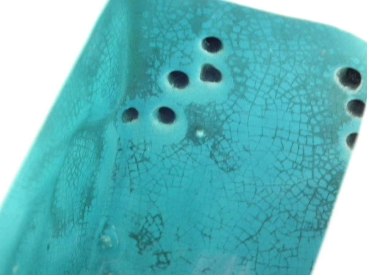 KILN EFFECTS: flecks of stray coloured glaze to the exterior.