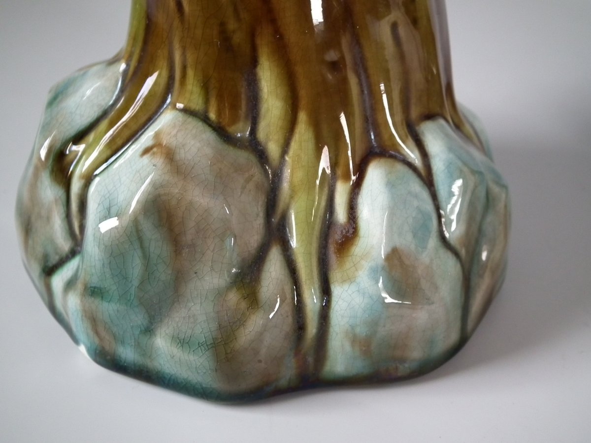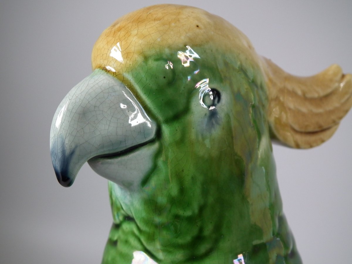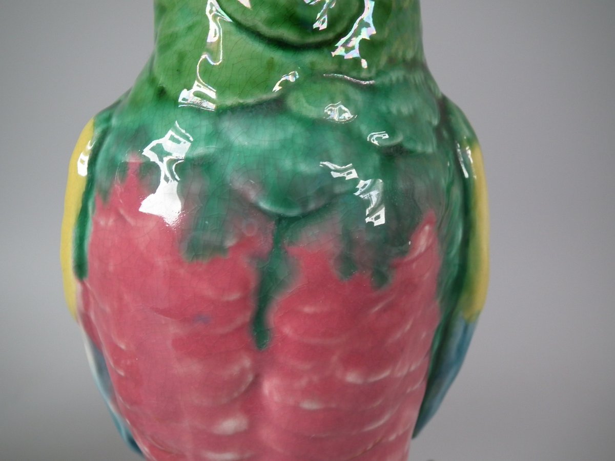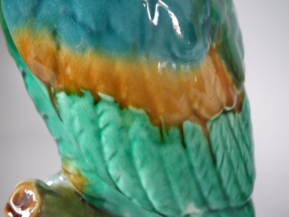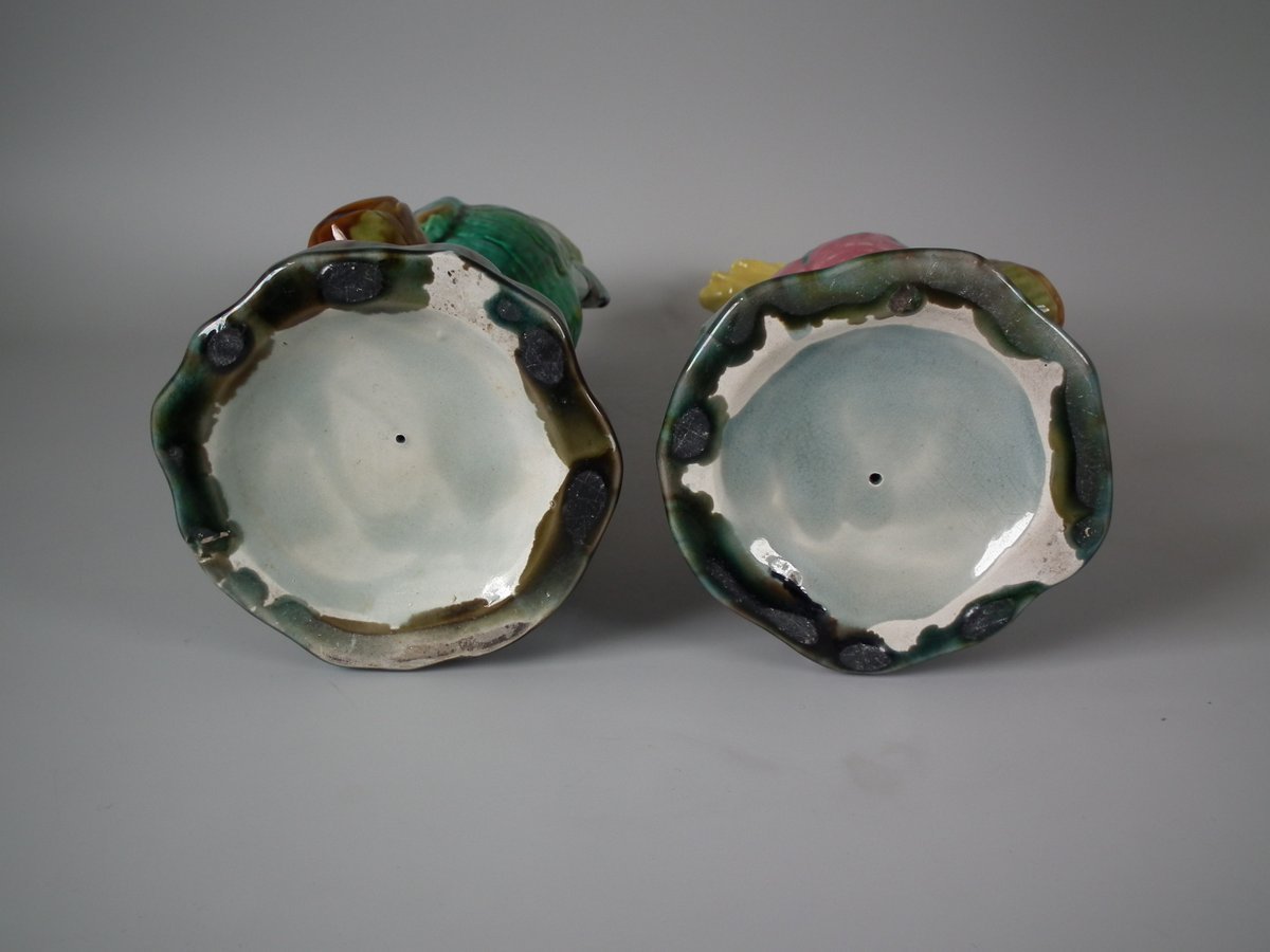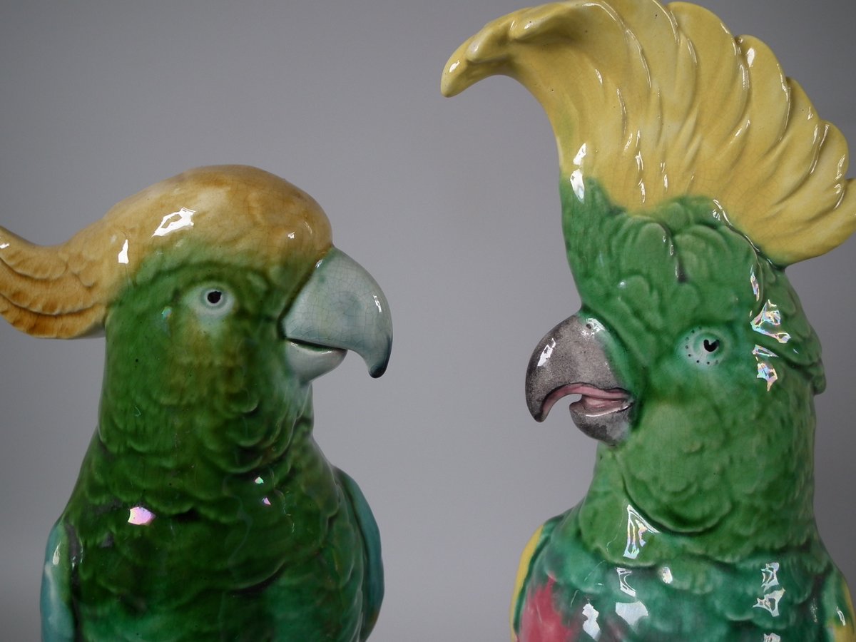 Pair of Mintons Majolica figures which feature cockatoos/parrots perched on a branch.