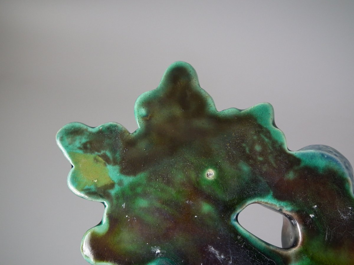RESTORATION. Bird's right wing and tip of one acorn leaf reglued and join retouched.