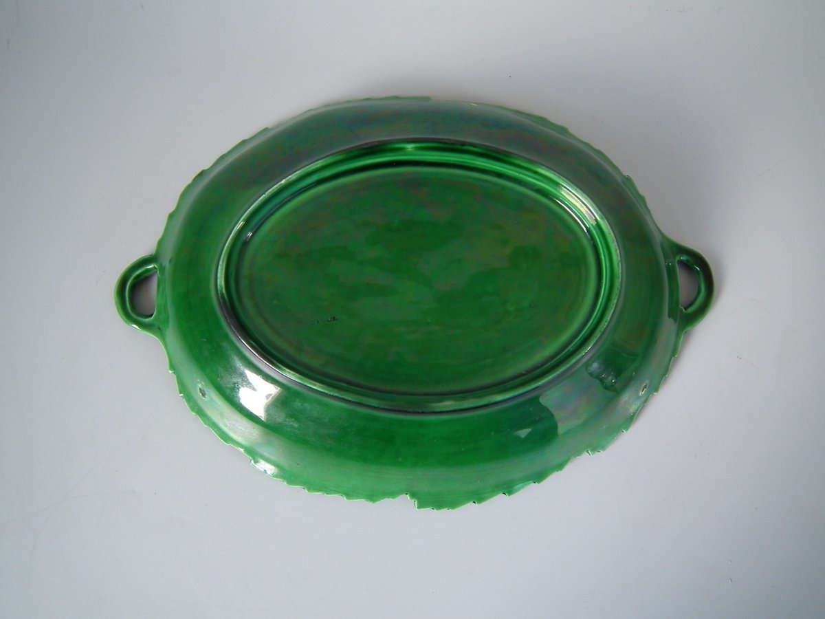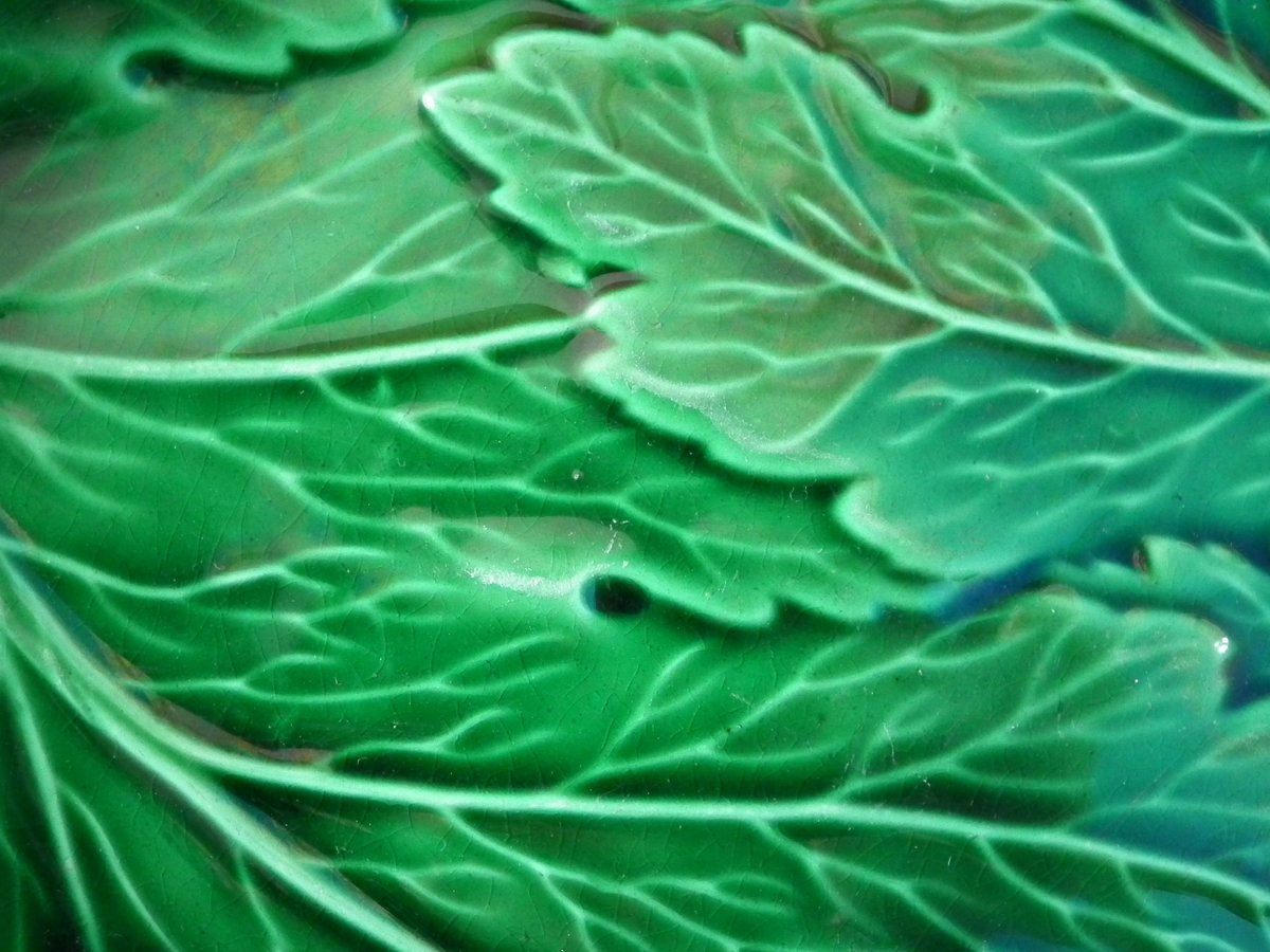 Victorian, circa 1850. 1.8ins high, 10.8ins wide, 7.5ins depth. Spode Majolica platter which features overlapping leaves.