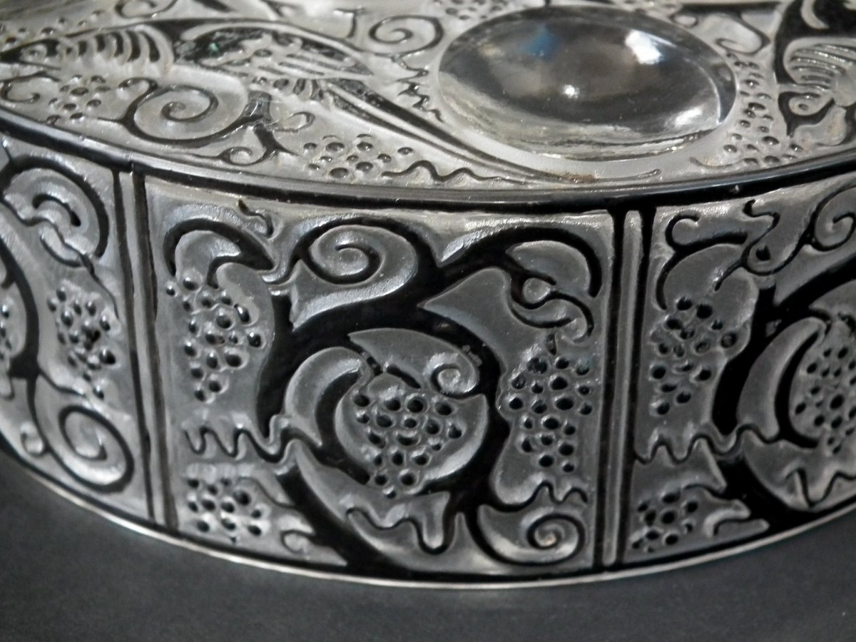 Moulded makers mark, 'LALIQUE'. Engraved, 'R Lalique France' to underside rim of the lid.