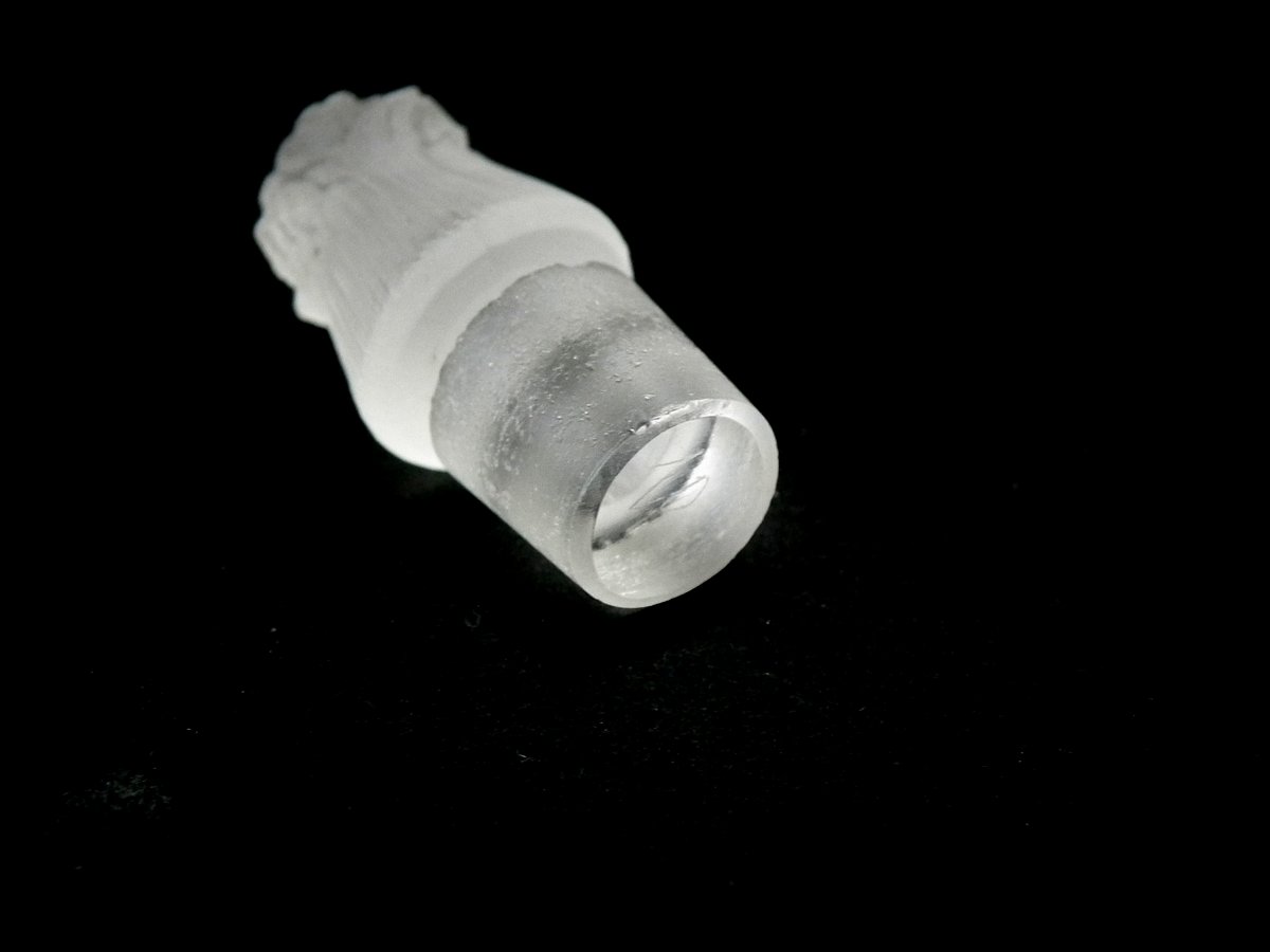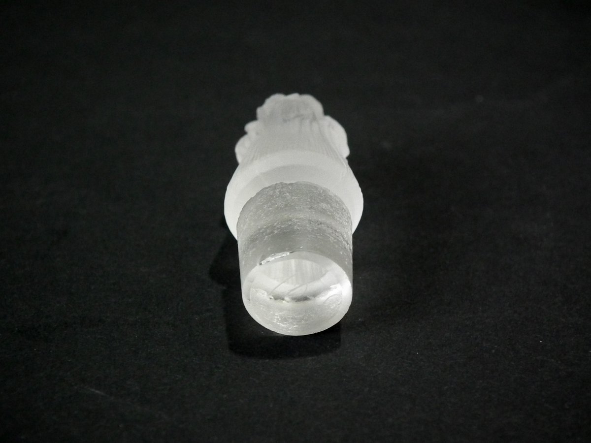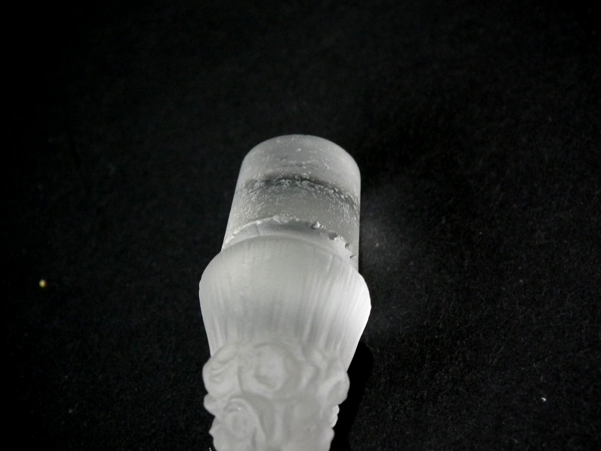 Tiny nibble to inner rim of bottle.
