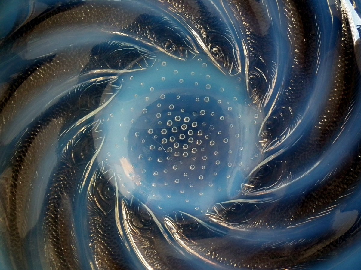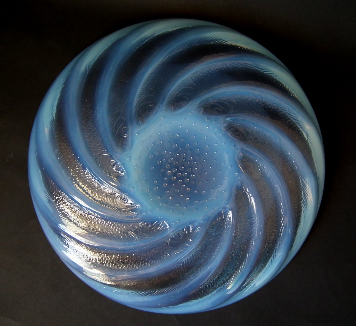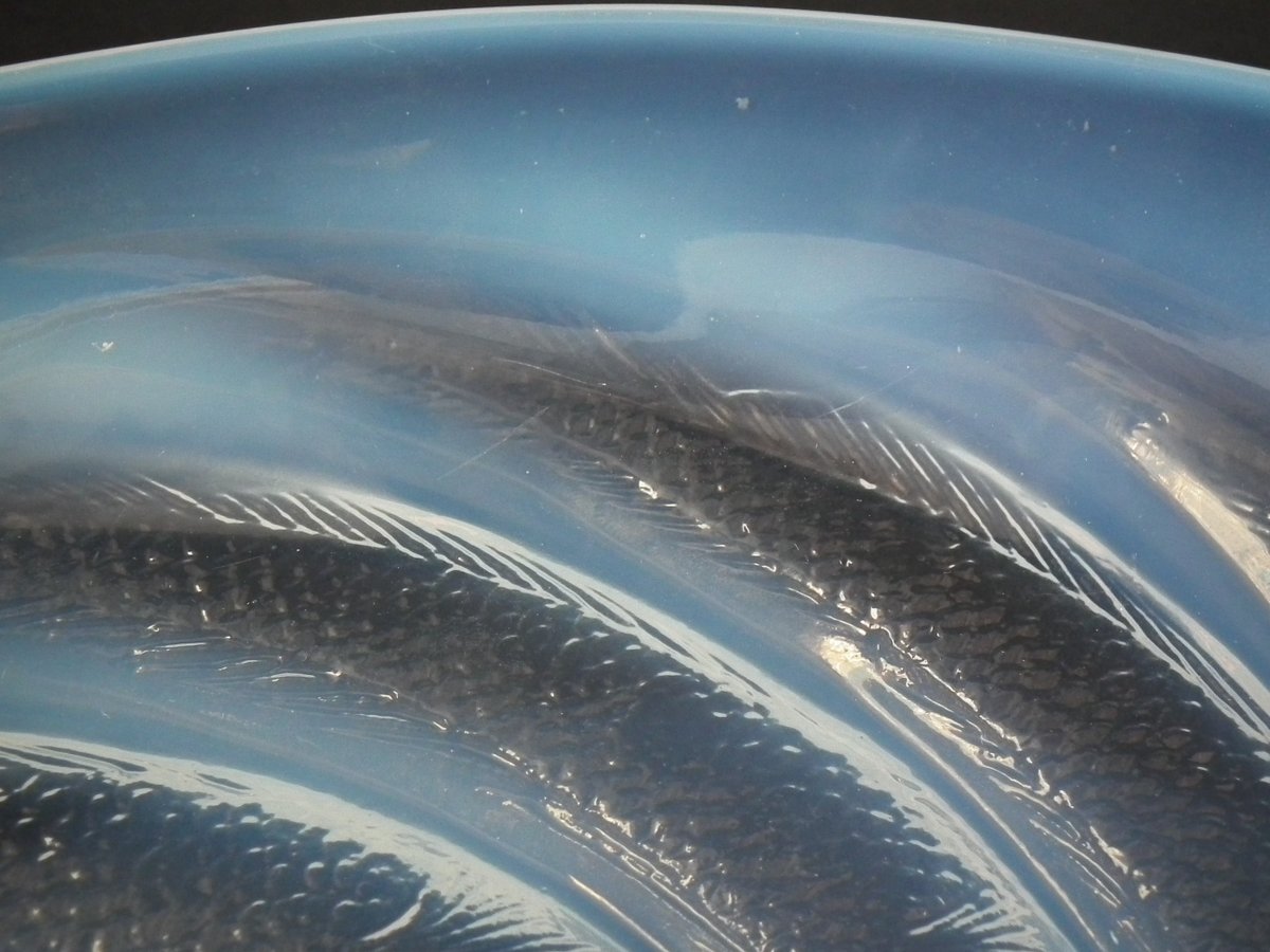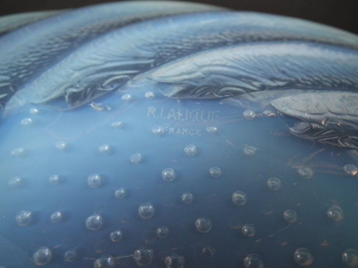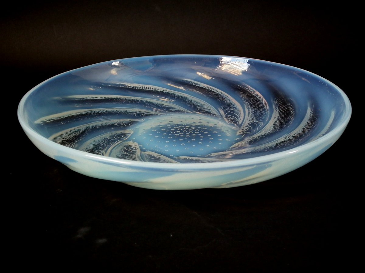 Introduced in 1931. Height: 4.6cm (1.97ins). Width: 29.5cm (11.61ins). Depth: 29.5cm (11.61ins).. Rene Lalique Clear & Opalescent Glass 'Poissons' Coupe (or shallow bowl).