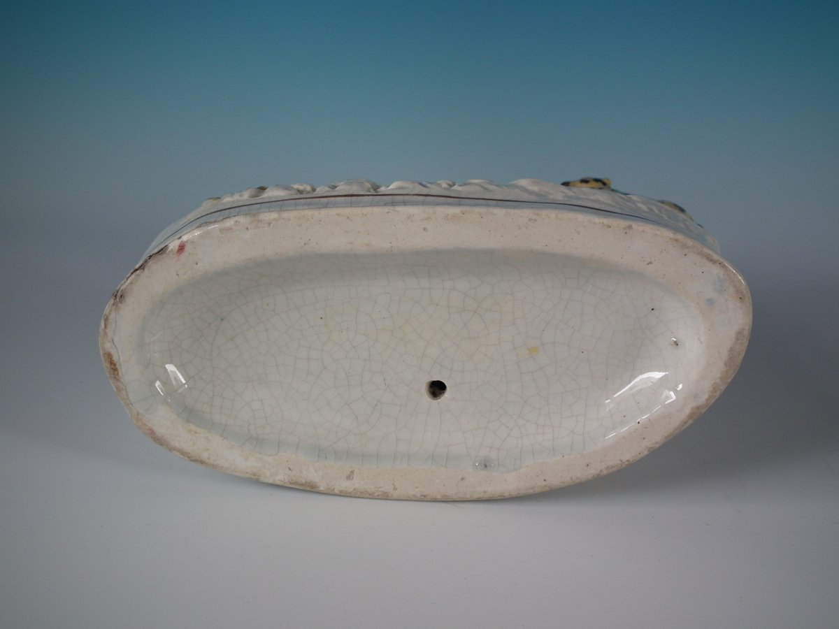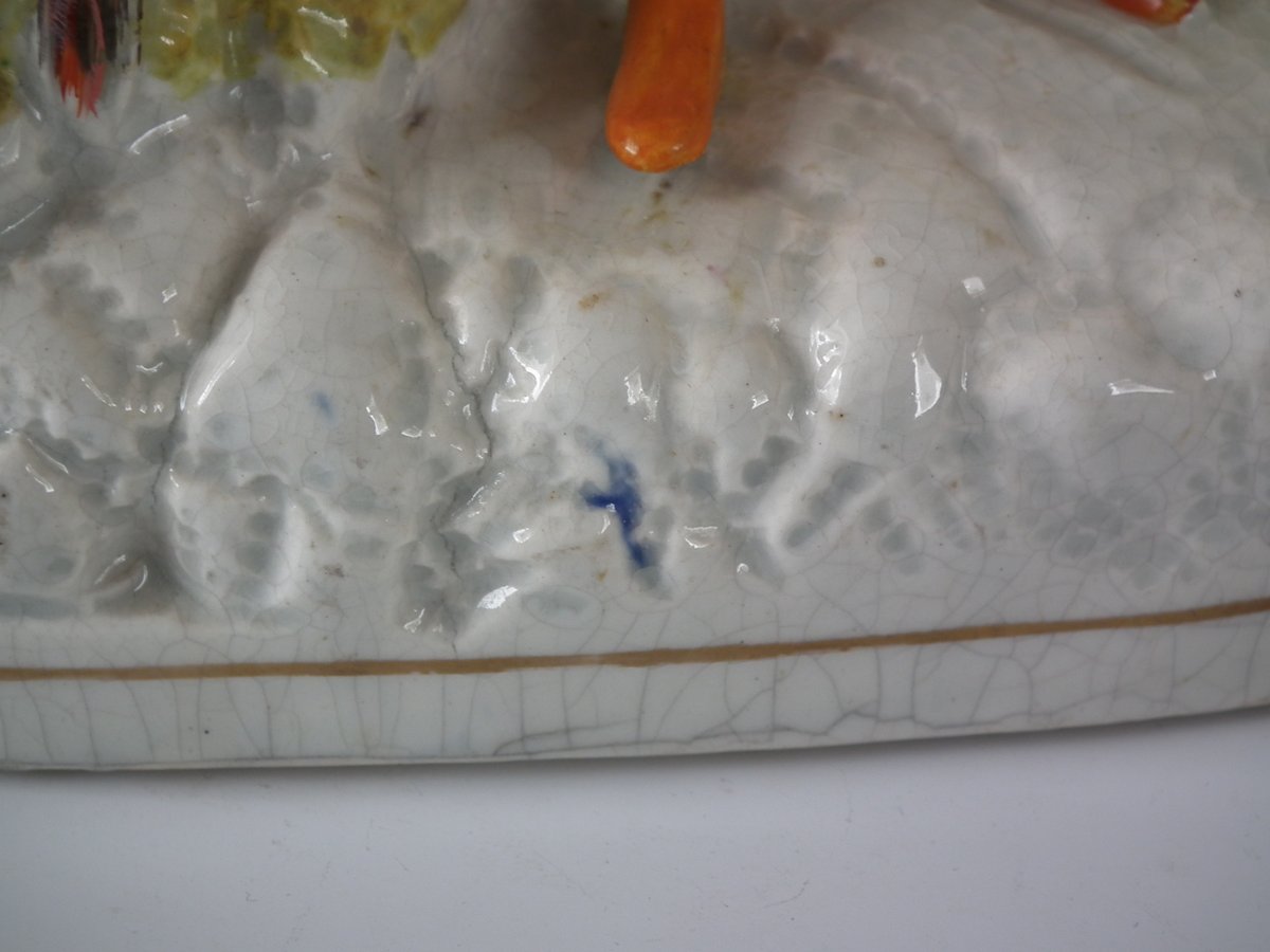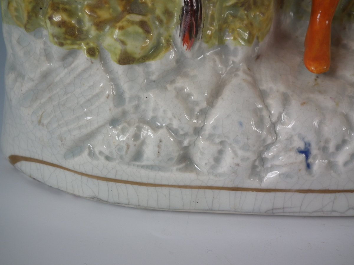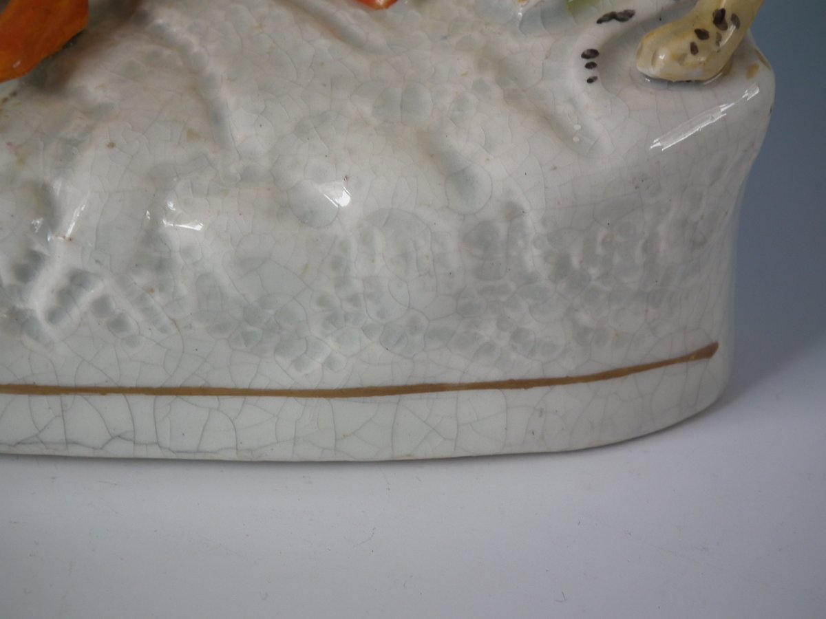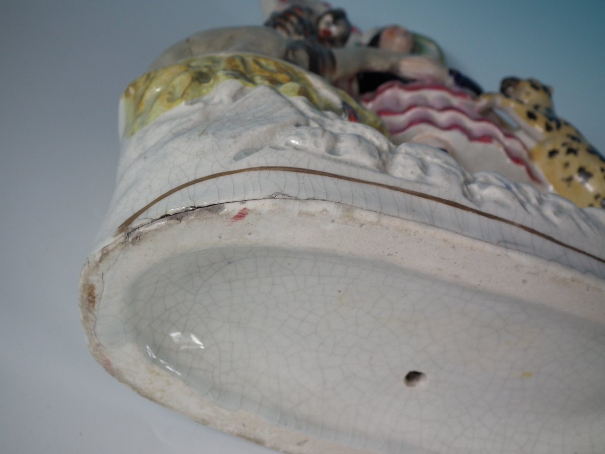 Victorian, circa 1860. 12.2ins high, 8.7ins wide, 4.3ins depth. Staffordshire Pottery figure with a folklore theme which features Ellen Blight with a lion and leopard,