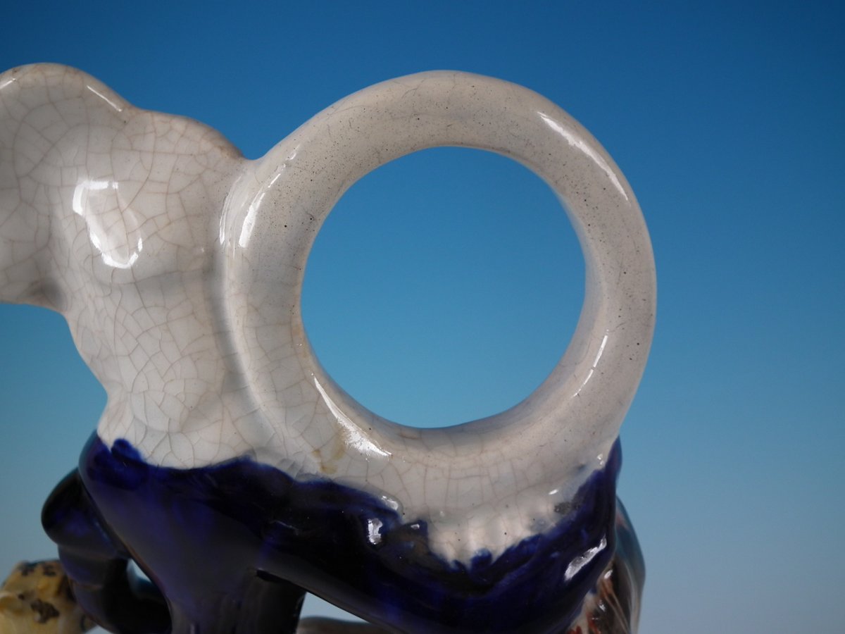 KILN EFFECTS: glaze filled shrinkage line to lion's hind leg and paw;