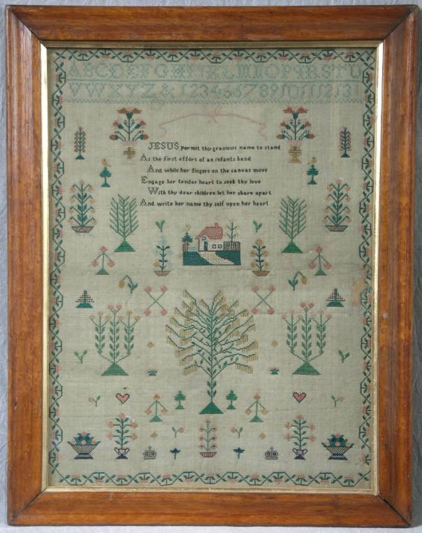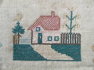 Circa 1830 Silkwork House Sampler