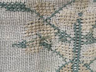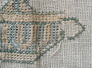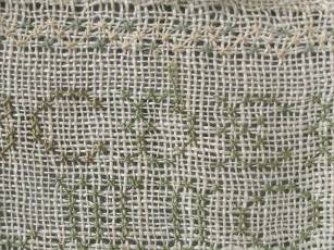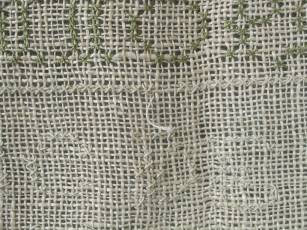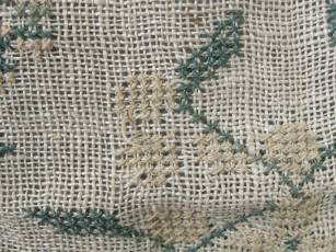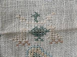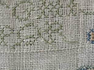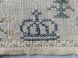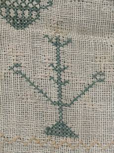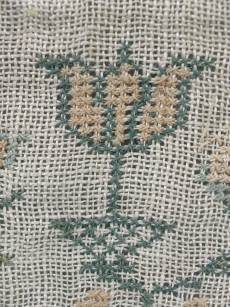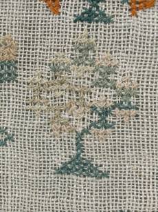 CONDITION: Good. No holes. No stains. Some loose threads to alphabets and motifs, illustrated.