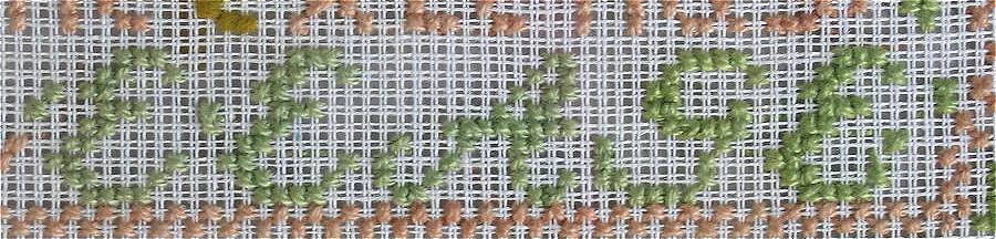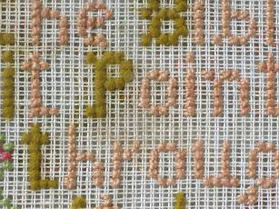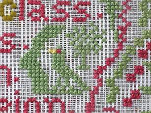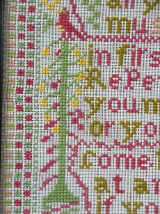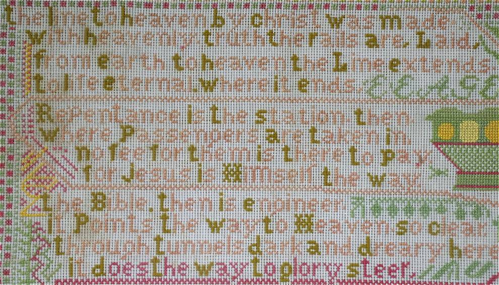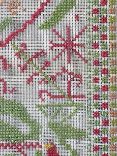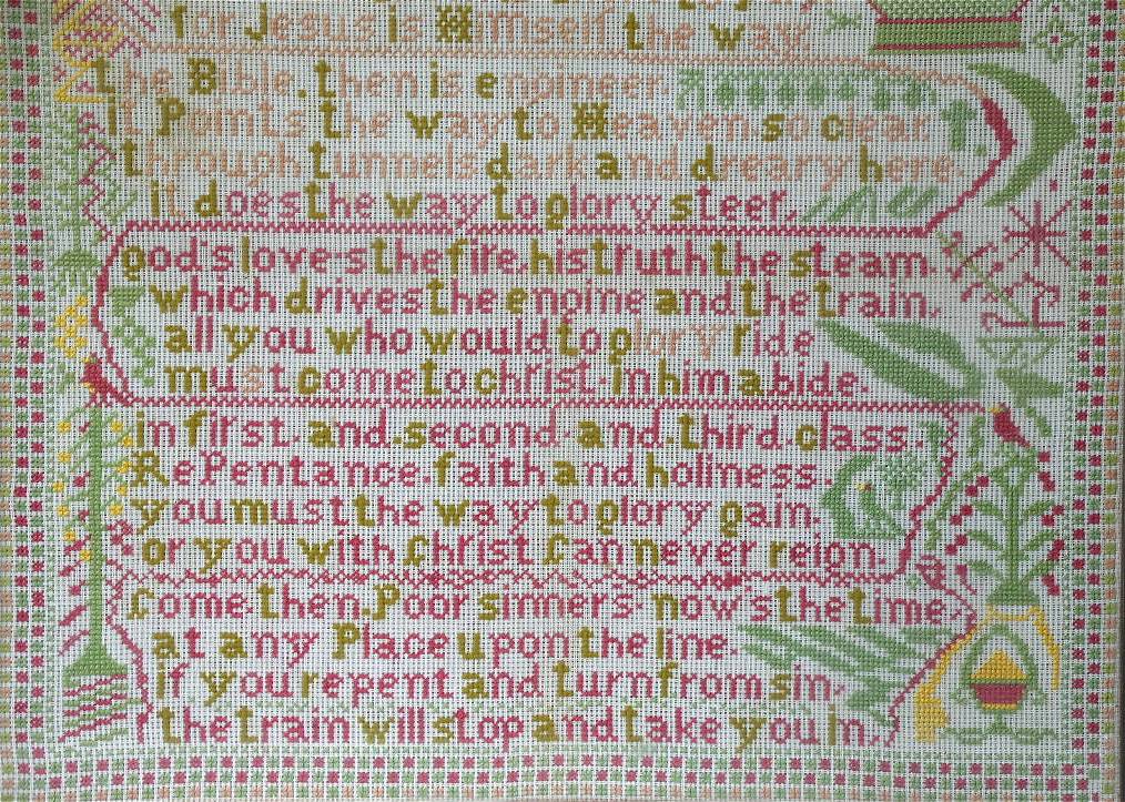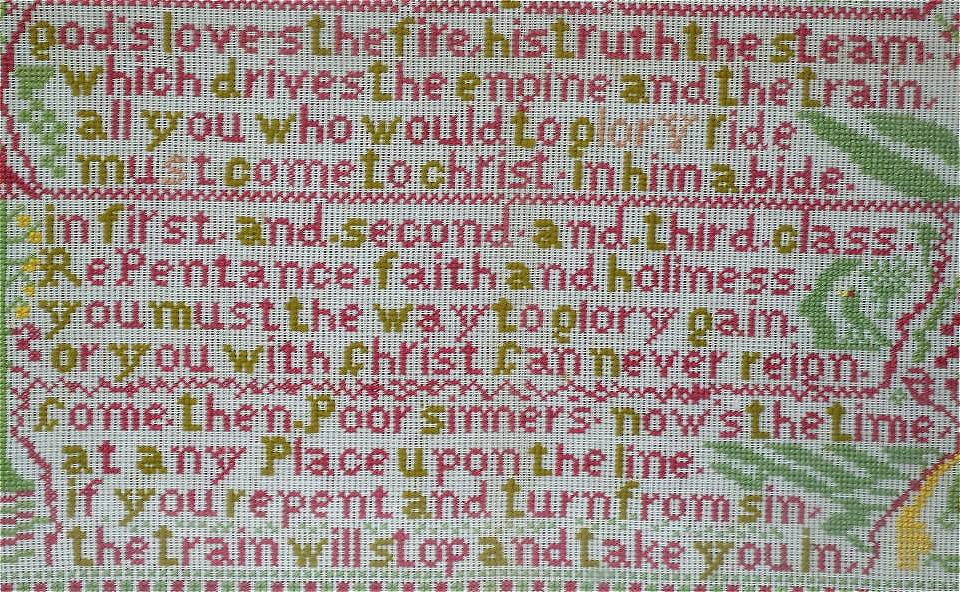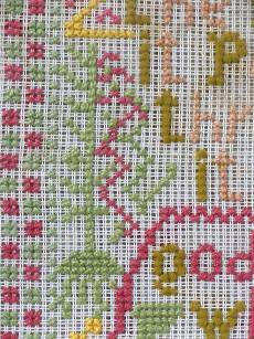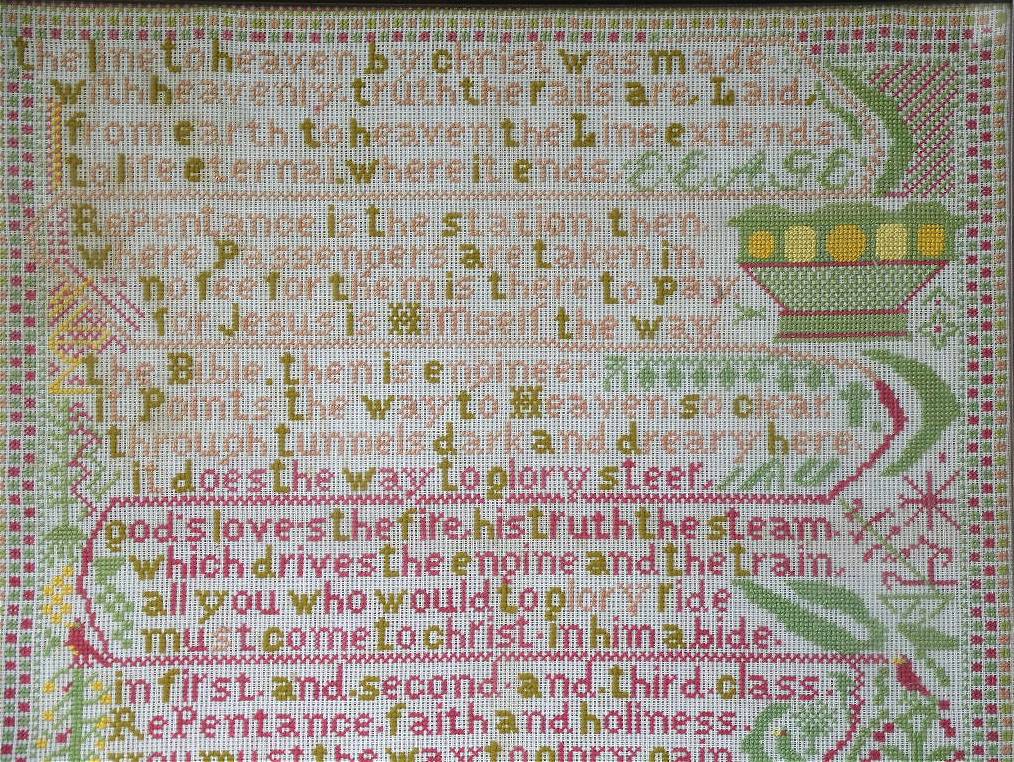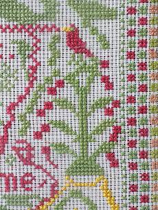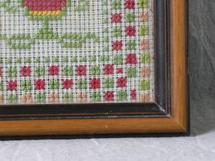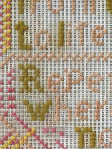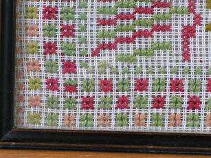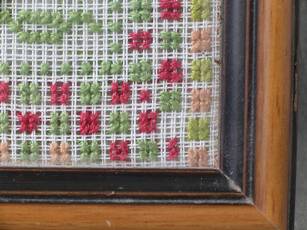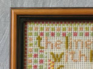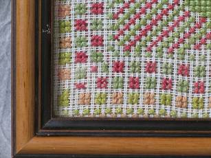 The sampler is worked in wool on canvas ground.