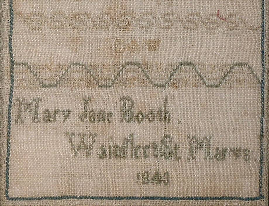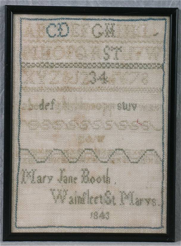 'Mary Jane Booth . Wainsleet St Marys . 1843'.