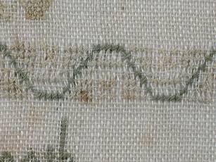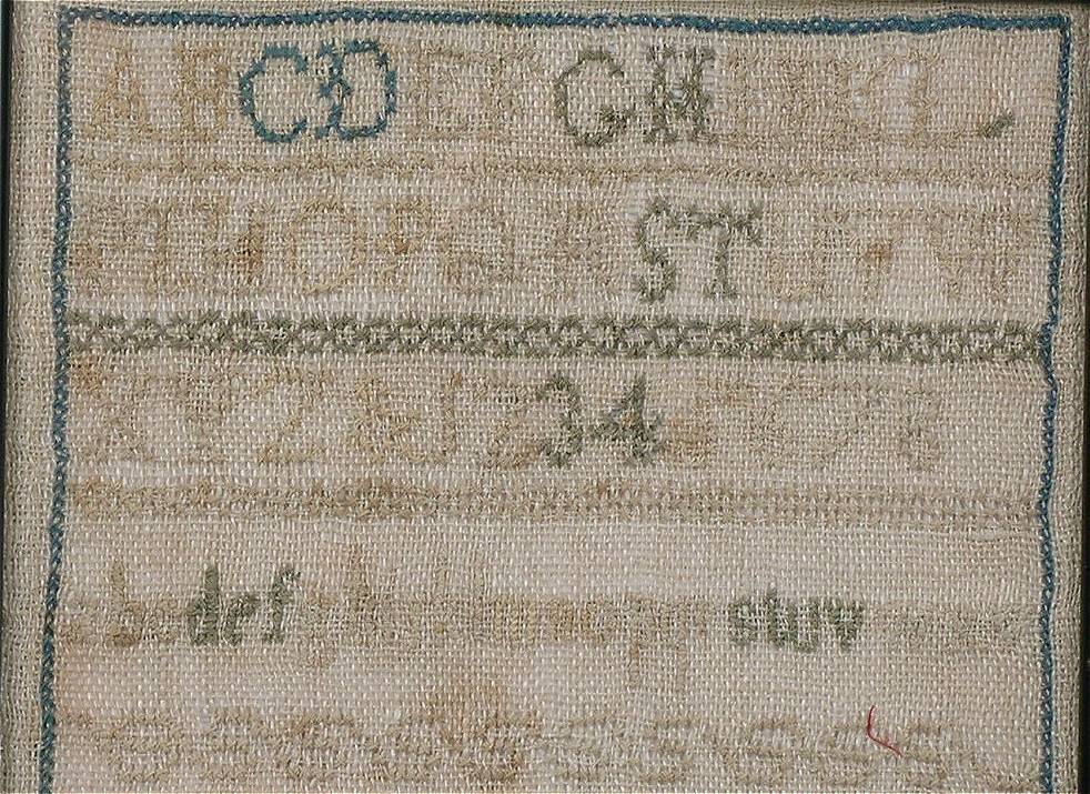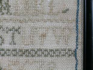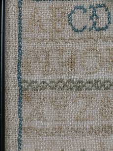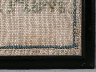The sampler is worked in cotton on linen ground, in cross stitch throughout.