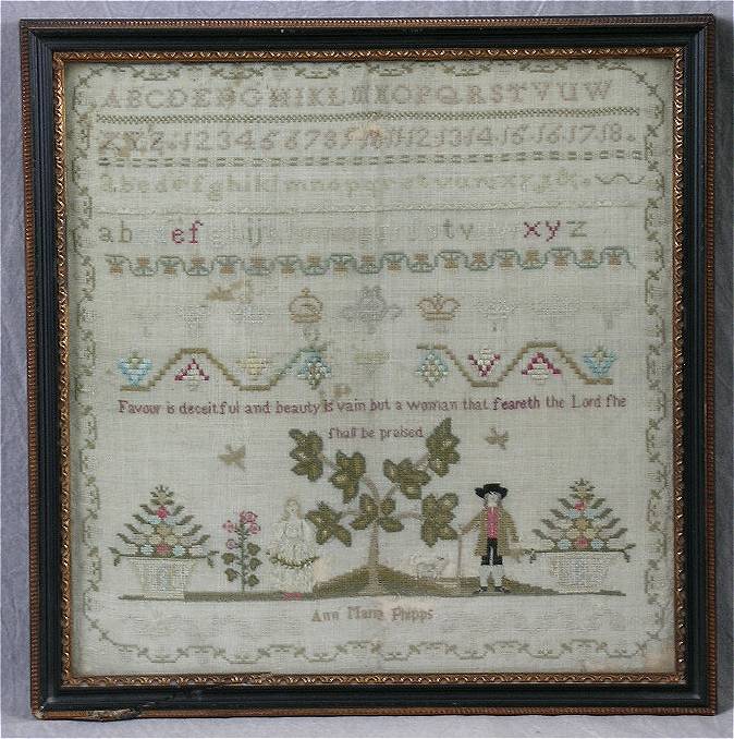Circa 1800 Silkwork Sampler by Ann Maria Phipps