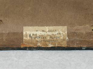 Stitched to linen over card with chipboard and brown paper dust cover.