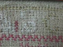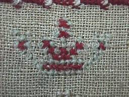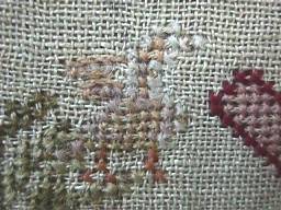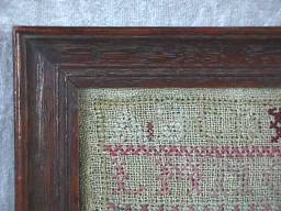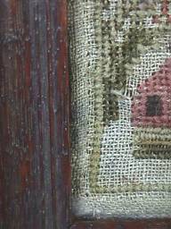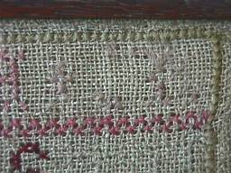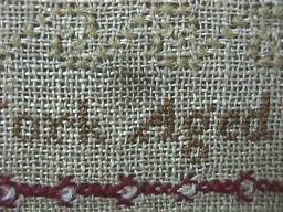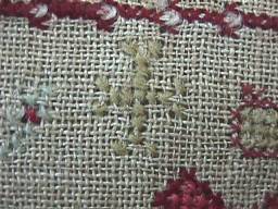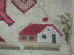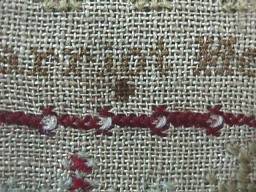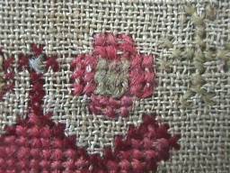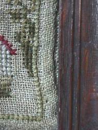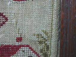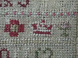 Minor stitch losses to letters of the alphabets and a couple of loose threads, illustrated.