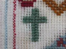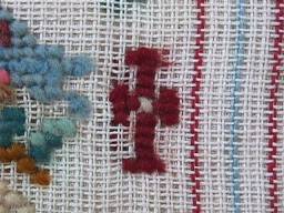 Minor stitch losses to a divider line, border and motifs, illustrated.