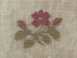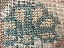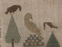 A wonderful set of motifs, some finely embroidered, including a house with a gate and tree,