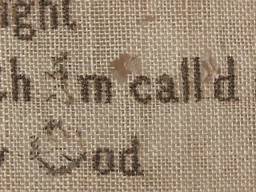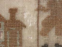 Some stitch losses to border, verses and motifs, illustrated.