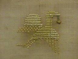 Some stitch losses to two of the butterfly motifs and the date, illustrated.