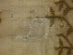 CONDITION: Generally Good. A number of holes to the edge from tacking and some loss of ground, worst illustrated.