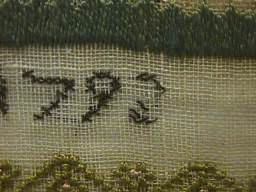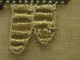 Colour run around the dark brown and dark green threads, worst illustrated.