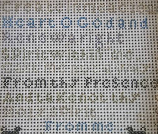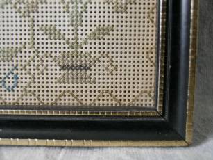 The sampler is worked in silk on paper ground, in a variety of stitches.