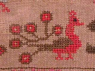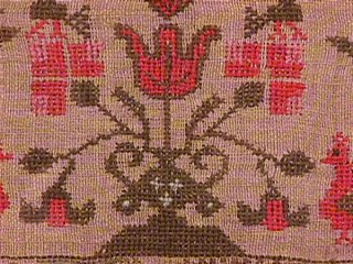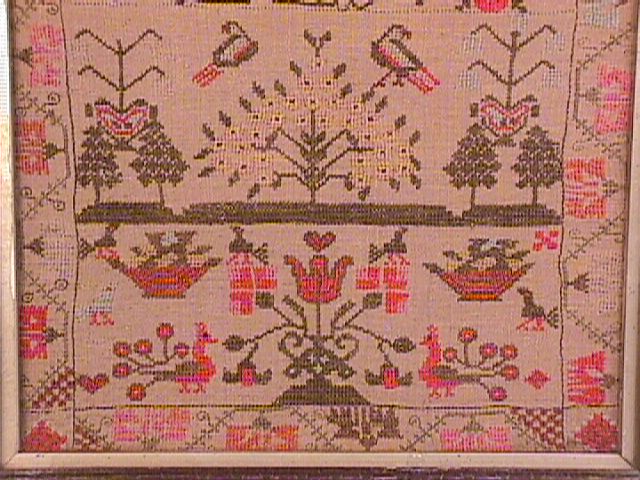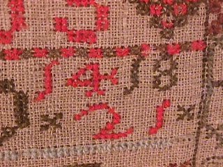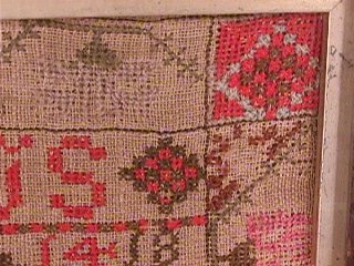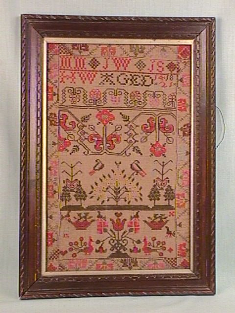 George IV, dated 1821. 11ins by 16ins. 1821 Colourful Sampler by HW aged 14.