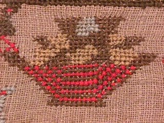 Red, yellow, green, light brown, orange, pink colour threads used.