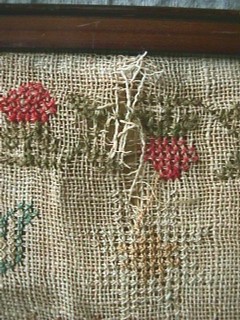 CONDITION: Generally good. One tear, (illustrated) approx 2 inches long and is located in the top left hand side. No stains. No stitch losses. Colours are all good and strong with no noticeable fading. No colour run. Unevenly stretched.