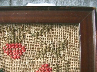 Victorian. 15ins by 15ins. Framed in an old wood frame with no glass, tacked to a card backing.